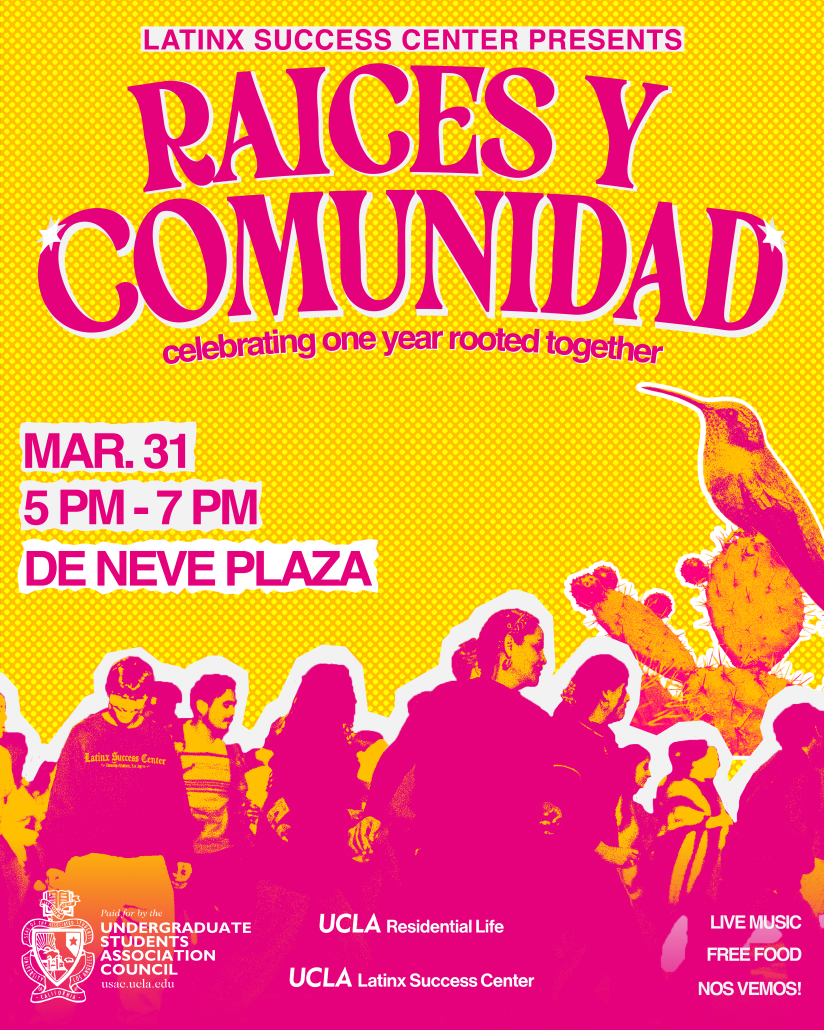 Join us on Tuesday March 31st, 2025 from 5:00 pm to 7:00pm at De Neve Plaza to celebrate the One Year Aniversario/One Year Anniversary of the Latinx Success Center!